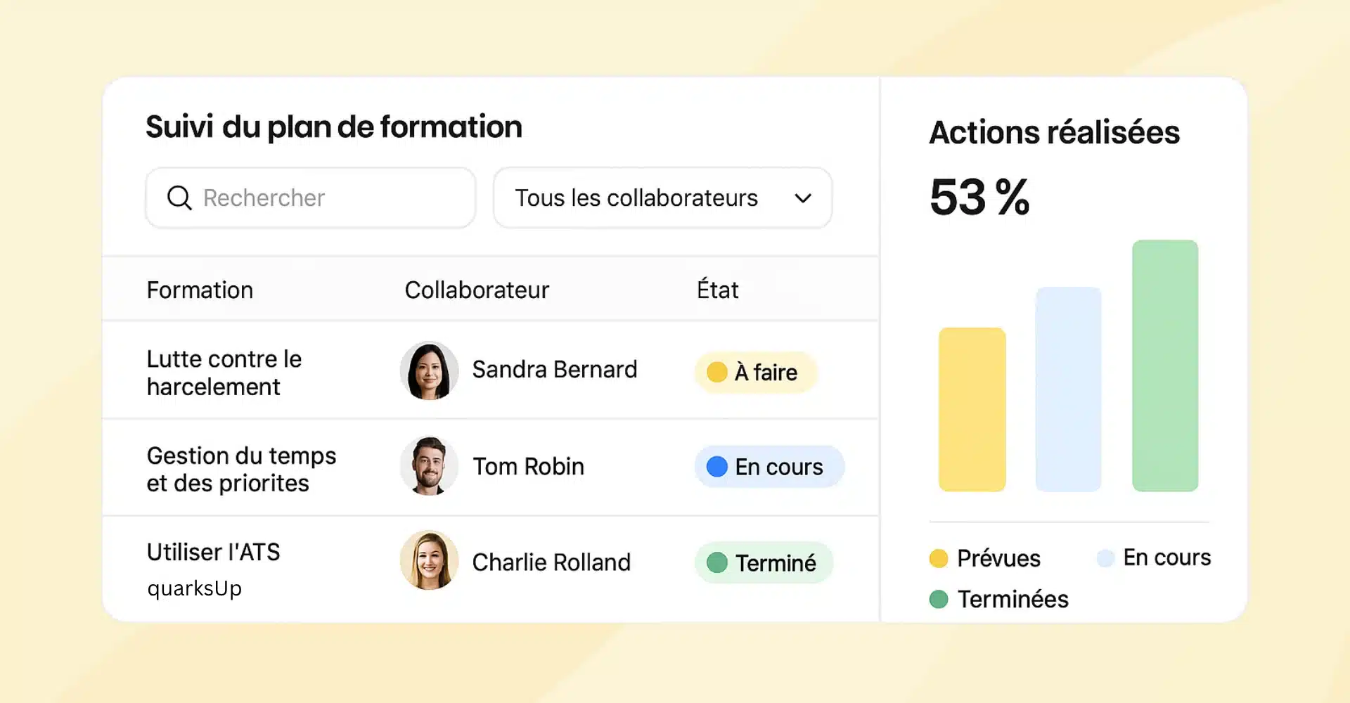 Le plan de formation concerne l’ensemble des employés de l’entreprise, quelle que soit leur fonction ou leur niveau hiérarchique. Il vise à développer les compétences et les connaissances de chacun pour favoriser l’évolution professionnelle et contribuer à la réussite collective de l’organisation.